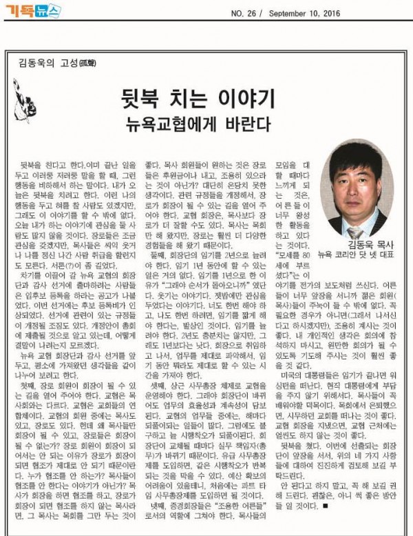 뒷북 치는 이야기 - 뉴욕교협에 바란다제목 : 뒷북 치는 이야기