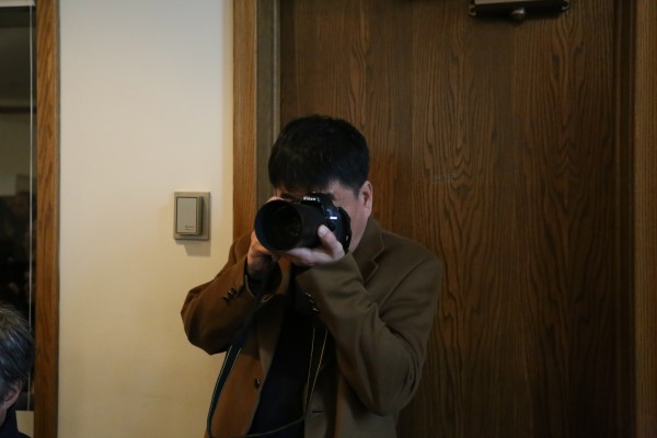 2018 KMBBS(국민대학교방송국동문회) 신년회 영상 인사를 시청하고 있는 후배들