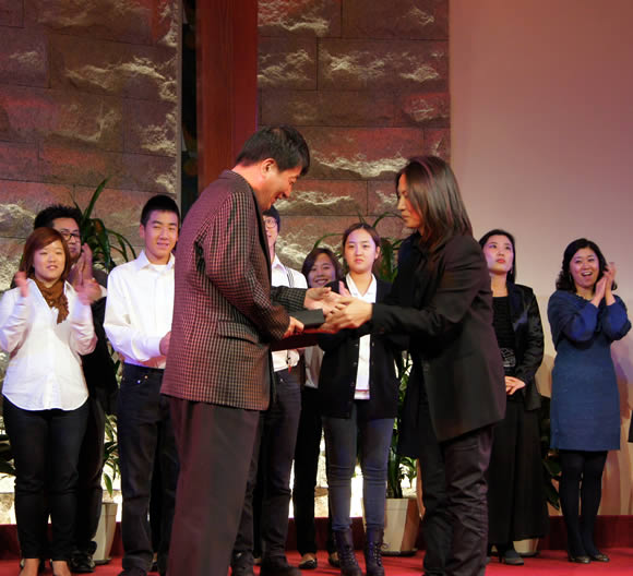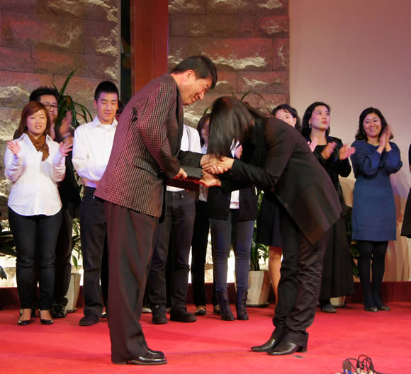 제2회 아멘넷 성가 경연 대회 동상 수상자인 이현경 집사님께 시상하는 모습(2010년 10월 25일)