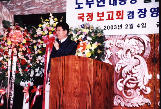 사진은 "장영달 의원 후원회" 공동 부회장의 자격으로 인삿말을 하고 있는 모습니다.