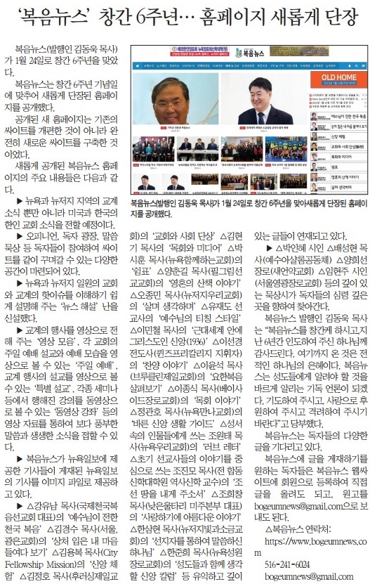 '복음뉴스' 창간 6주년 --- 홈페이지 새롭게 단장